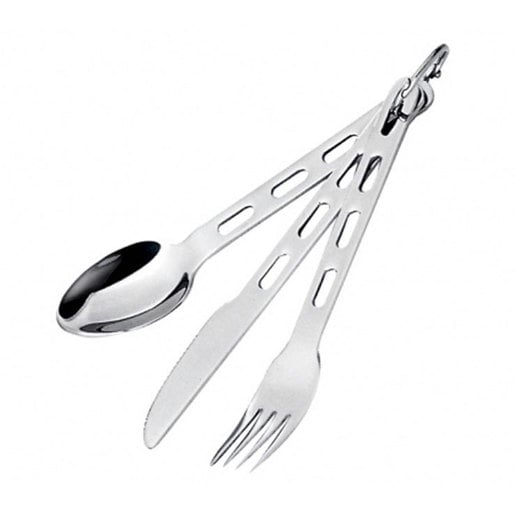 GSI Steel Cutlery Set - When it comes to durable, lightweight kitchenware, thousands of Boy Scouts can't be wrong. If you need kitchenware that can take a beating and keep on heating, Glacier Stainless®, is for you. Each piece is made of high-grade 18/8 stainless steel and built to last for years to come. Includes a fork, knife, and spoon that are connected with a carabiner clip. Stainless SteelIncludes Spoon, Fork, and KnifeCarabiner Clip3.3 oz