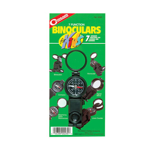 The Coghlan's Binocular for Kids include seven separate functions for looking and learning - binoculars, monocular, magnifying glass, linen counter, compass, stereoscope, and signal mirror.
