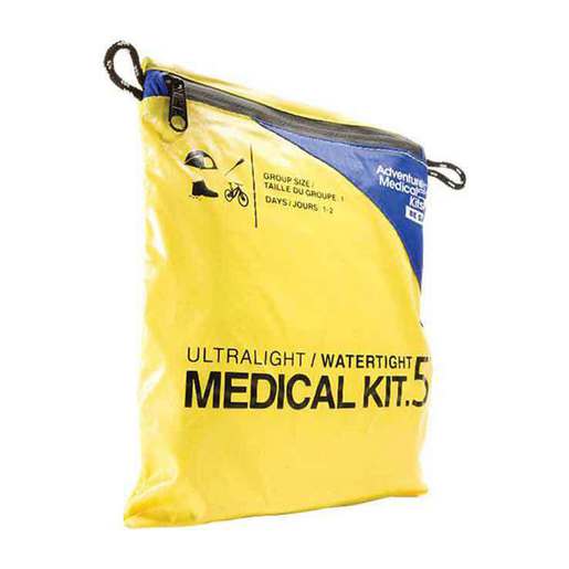 Adventure Medical Kits Ultralight & Watertight .5 First Aid Kit -The Ultralight / Watertight Series features proprietary DryFlex, bags for the ultimate in ultralight, waterproof storage. For the multi-sport athlete that refuses to be let down or weighed down by his or her gear.The Ultralight / Watertight .5 is perfect for one-to-two-day solo trips when you need an ultralight kit with enough supplies to treat common injuries. Packaged in a rugged, yet lightweight silnylon bag with a DryFlex, waterproof liner, the UL / WT .5 will stay dry whatever the elements. The silnylon bag has enough room to add other first aid and survival items and provides rugged protection for the DryFlex liner. Group Size: 1 Person Trip Duration: 1 - 2 Days 2-Stage Waterproofing Clean and Close Wounds Manage Pain and Illnesses Stabilize Fractures and Sprains Stop Blisters Before they Start Easy Access Bandages Kit Includes: 2 - Bandage, Butterfly Closure 1 - Tape, 1/2" x 10 Yards 3 - Bandage, Adhesive, Fabric, Knuckle 5 - Bandage, Adhesive, Fabric, 1" x 3" 1 - Bandage, Conforming Gauze, 2" 2 - Dressing, Gauze, Sterile, 3" x 3", Pkg/2 2 - Dressing, Gauze, Sterile, 2" x 2", Pkg/2 1 - Dressing, Non-Adherent, Sterile, 3" x 4" 6 - Antiseptic Wipe 2 - Triple Antibiotic Ointment, Single Use 1 - Skin Tac, Topical Adhesive, Wipe2 - Ibuprofen (200 mg), Pkg/2 2 - Aspirin (325 mg), Pkg/2 2 - Antihistamine (Diphenhydramine 25 mg) 2 - After Bite Wipe 2 - Acetaminophen (500 mg), Pkg/2 1 - Moleskin, Pre-Cut & Shaped (11 pieces) 2 - Alcohol Swab 1 - Splinter Picker/Tick Remover Forceps 3 - Safety Pins