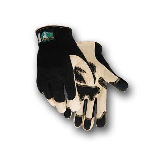 Golden Stag Men's Pigskin Mechanic's Glove - This Mechanic's glove has Reinforcement Patches on Palm & Fingertips, Open Cuff, Neoprene Knuckle, and Stretch knit Back. Reinforcement Patches on Palm and Fingertips Open Cuff Neoprene Knuckle Stretch knit Back