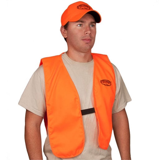 Sportsman's Warehouse Men's Blaze Hat Vest Combo - Stay safe this hunting season with this blaze hat and vest combo. The vest will fit over jackets and stay visible while on the hunt. The blaze hat features an adjustable hook loop closure and a wicking sweat band. Blaze vest hat comboMid profileWicking sweatband in hatHook loop closure