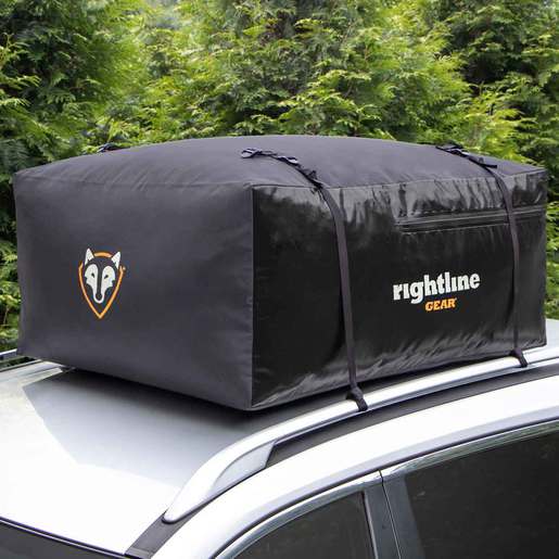 Rightline Gear Sport 2 Car Top Carrier - The Sport Carriers' ZipRight System locates a urethane coated zipper on the protective zipper flap, preventing rain water from entering the carrier. Other roof top carriers feature a standard zipper located where the zipper flap meets the bag, allowing rain water to enter the carrier. The carriers are constructed from UV protected PVC Semi-Coated Mesh XT and Hydrotuff using Dual Seam Technology. The materials are sewn together for strength and then welded along the stitching to make the seam waterproof. The end result is a highly durable cargo bag that lets you travel with the peace of mind that your gear will stay dry. After use, the Sport Carriers fold down for storage in a stuff sack, complete with a sewn in set up guide. All of the Sport Car Top Carriers are aerodynamically designed to save $$$ at the gas pump. Use the carriers on your next family vacation, backwoods expedition, shopping spree or move. Capacity: 15 cu ft Dimensions: 44 L x 36 W x 14-19 H inch Aerodynamically designed for SUVs, minivans, and crossovers, WITH or WITHOUT a roof rack 100% Waterproof with ZipRight System and Dual Seam Technology Includes: Carrier 4 Attachment straps 4 Car slips Stuff Sack with sewn-in set up guide