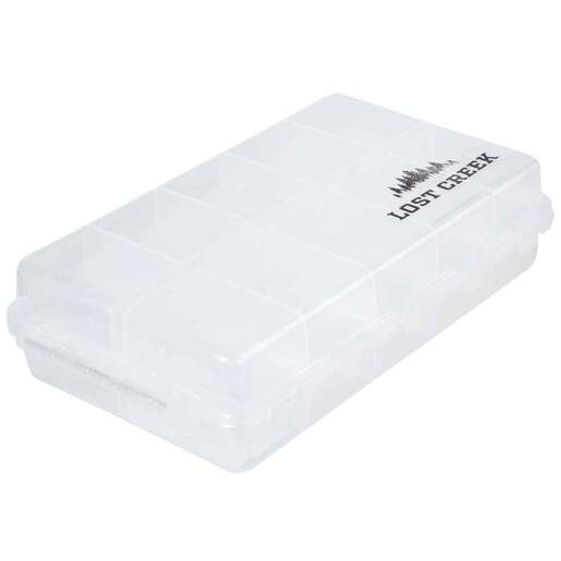 Lost Creek 20 Compartment Clear Poly Box - This clear poly fly box has 20 compartments to store flies, lures, and other small fishing accessories. Each compartment has its own lid. The box is hinged in the middle to make it compact. A snap closure keeps the box contents secure. The Lost Creek logo is prominently displayed on the exterior. Dimensions: 6.5",Lx3.75",Wx1.5",D. Clear poly construction20 compartments of storageDurable snap closureDimensions: 6.5",Lx3.75",Wx1.5",D