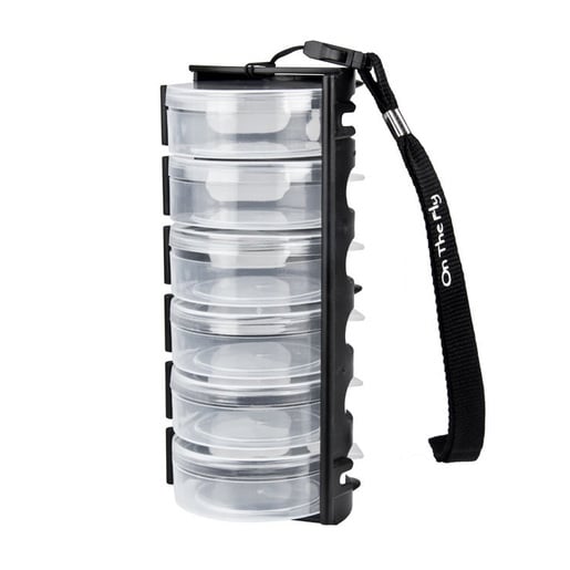 Sportsmans Warehouse On the Fly Fly Management System - This handy small item storage container is a must have in every drift boat, raft, float tube, or anywhere that you need your gear on the go! The On the Fly system uses six plastic cups to keep your flies, leaders, indicators, and other small items organized and at the ready. Each cup is 2.5 inches in diameter and 7/8 inch deep and locks solidly into place, but then releases easily with the touch of your finger. So your day',s gear is always in sight and ready to go. Includes a strong lanyard for security. Includes six fly cups for storageCups snap in and pop out easily, yet stay putLanyard includedDimensions: 3",Lx3",Wx6.5",D