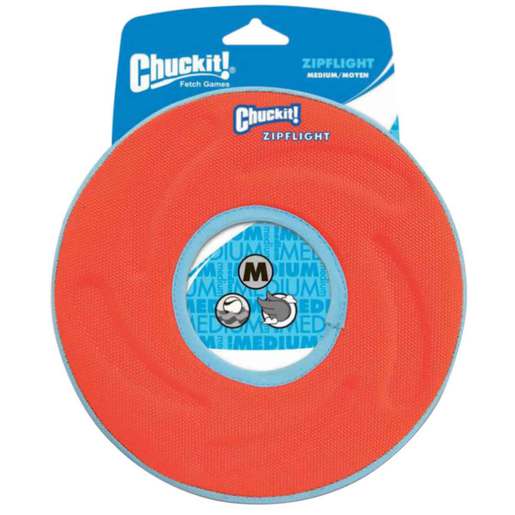 Chuckit Ziplight Medium Disc - Assorted - On land and in the water the Zipflight amphibious flying ring is designed for exceptional visibility and performance. Soft yet hardwearing, with rubber rim and liner for extra grip and strength. Assorted Color - May recieve either Orange/Blue or Green/Blue variant Medium Floating