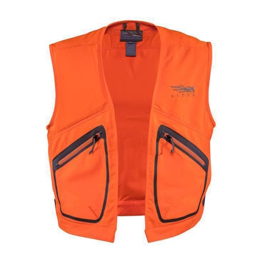 Sitka Ballistic Vest - The Sitka Men’s Ballistic Hunting Vest gives hunters the required amount or orange while also making shooting more comfortable and providing useful storage. This vest features a reinforced foam shoulder pad and is treated with Durable Water Repellent finish to resist light precipitation. Interchangeable reinforced foam shoulder pads keep hunters comfortable while shooting from either side Hand pockets are zippered for secure storage of small essentials Waist band is adjustable for comfort and precision Magnetic buckle quickly reconnects for easy layer adjustments in the field Resists light precipitation and face fabric won’t wet out thanks to Durable Water Repellent finish Weight: 14.4 ounces Style: 50093