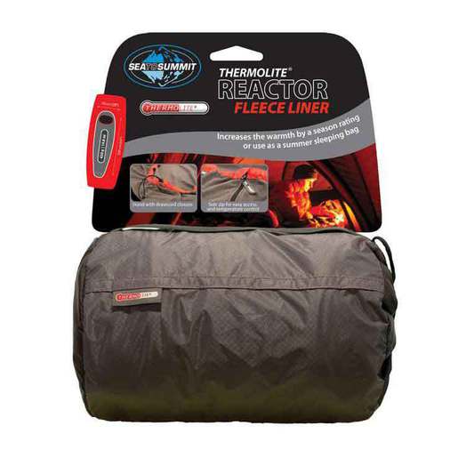 Sea To Summit Thermolite Reactor Fleece Liner -The Thermolite Fleece is incredibly warm for its weight and we have given this fabric a brushed finish for extra comfort. Smaller and warmer than other fleece liners The quarter zip makes it easier to get in and out of, and the paneled hood can be drawn in when maximum warmth is required Technical mummy shape with one handed, easy to operate draw string hood Quarter zip makes it easy to get in and out Can be used as a stand-alone sleeping bag in warmer temperatures Length: 78 in Width: 28 in Weight: 14.8 oz Color: Black