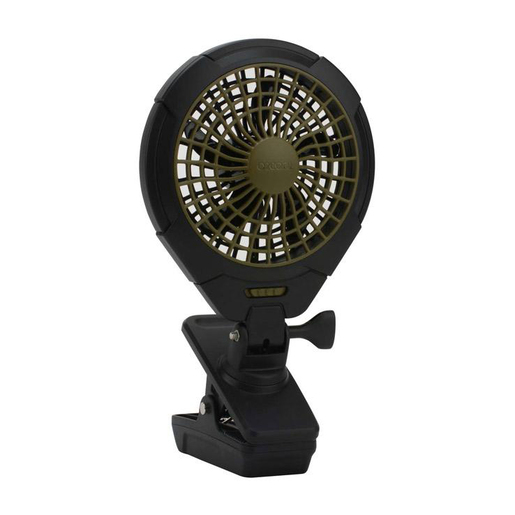O2Cool 5--Inch Portable Camping Clip Fan -Heavy-duty clip allows you to use fan almost anywhere. Fan head rotates and pivots to direct airflow where needed. Powerful two-speed fan offers quiet cooling. New rugged design makes it great for camping and being outdoors. Requires 4-AA batteries (not included). Battery life (varies by type of batteries used) High speed-11hrs/Low speed-14hrs. Blade size: 5 inchesNumber of speeds: 2Number and Type of Alkaline Batteries: 2 D-Cell batteries (not ncluded)Product Dimensions (retail packaging): 9.1 x 5.7 x 10.5 in