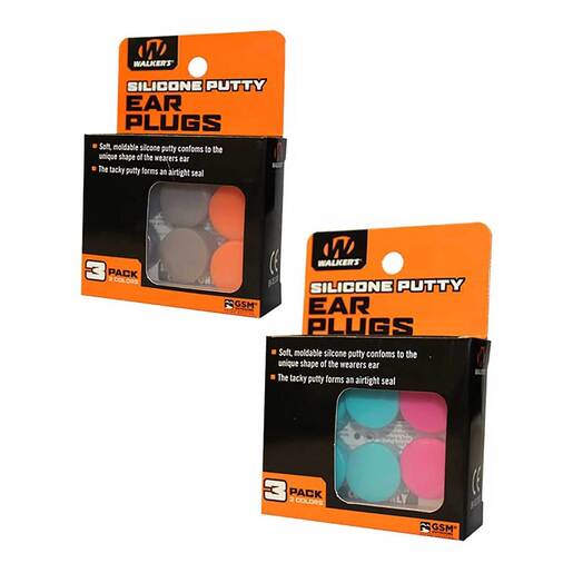 Walker's Silicone Putty Passive Earplugs - Soft, moldable, silicone putty conforms to the unique shape of the the wearers ear. 22 NRR Storage case included 3 Pack of 2 Colors Available in 2 colors sets: 4 FDE / 2 Blaze Orange 4 Teal / 2 Pink