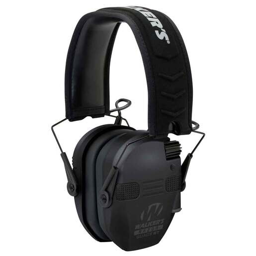 Walker's Slim Electronic Quad Electronic Earmuffs with Bluetooth - Ultra Low Profile Ear Cups. Bluetooth Sync with Mobile devices. Rubberized Coating. Four Hi Gain Omni Directional Microphones. Low Noise / Frequency tuned for natural sound clarity. Volume Control. Compact Folding Design. Comfort headband with metal wire frame. Sound dampening composite housing. NRR 23. Sound Activated Compression – 0.02 second reaction time. Recessed Volume Control Knob. External Battery Door. Operates on 2 “AAA” Ultra Low Profile Ear Cups Bluetooth Sync with Mobile devices Integrated Communication Mic Rubberized Coating Four Hi Gain Omni Directional Microphones Low Noise / Frequency tuned for natural sound clarity Volume Control Compact Folding Design Comfort headband with metal wire frame Sound dampening composite housing NRR 22 + Sound Activated Compression - 0.02 second reaction time Recessed Volume Control KnobExternal Battery Door Operates on 2 "AAA" batteries included