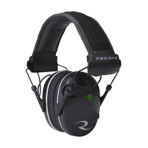 Radians R-Series R3200 Dual Mic Earmuff -Two independent microphones pick up and amplify low sound level noises while compressing sounds that exceed safe levels. Compact folding feature for easy storage. 3.5mm stereo input jack and patch cable works with most smart devices. Electronic earmuff amplifies low level sounds while compressing noises that exceed safe levels 3.5mm stereo input jack and patch cable (included) enable playback from smartphone or digital audio player Two microphones LED ON/OFF indicator light prevents unintentional battery discharge Premium adjustable headband Compact folding feature
