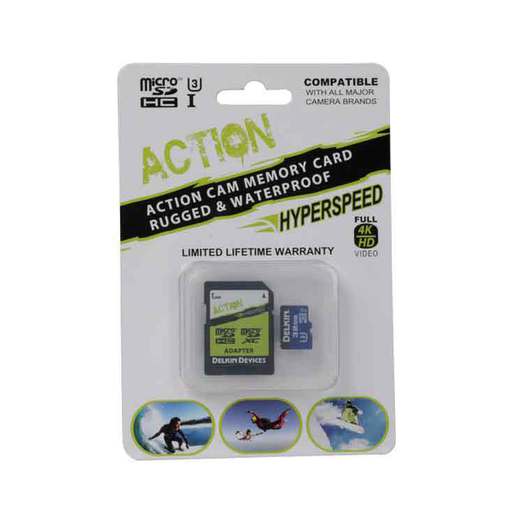 Delkin Devices Micro 3 Action Memory Card- Giving you 4K HD video this memory card is great for Action cams, drones, GPS, fish finders, digital cameras, smart phones, computers and much more! 4K HDHyperspeed Rugged and waterproof Compatible with all major camera brands