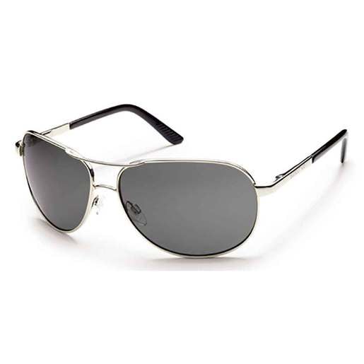 Suncloud Aviator Polarized Sunglasses - his is the classic wire Aviator. Large size, comfortable with spring hinges for a custom fit. 100% protection from harmful UV rays. Take off! Polarized polycarbonate injection molded lenses 8 base lens curvature Silicone nose pads Spring hinges Microfiber cleaning/storage bag 100% UV protection Large fit