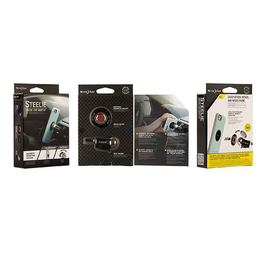 Nite Ize Steelie Orbiter Vent Kit - This low-profile magnetic phone mounting kit allows you to easily attach, detach, and rotate your phone on the portable Vent Mount. The low-profile metal plate adheres to your phone or case, creating a secure magnetic connection with the Orbiter Magnetic Socket. By combining high-friction materials with magnetic strength, the Orbiter keeps your phone secure and accessible. The Steelie Orbiter Vent Mount Kit takes hands-free to the next level by combining our portable Vent Mount, powerful Orbiter Magnetic Socket, and a low-profile metal plate that easily attaches to your phone or case. The Vent Mount can be moved from car to car by simply unlocking the strong cam lever, then locking it back in place on the next vehicle vent. The Orbiter Magnetic Socket attaches to the Vent Mount using a powerful neodymium magnet and silicone center for a secure connection and smooth glide. The mounting surface of the Orbiter Magnetic Socket features a thin high-friction ring that prevents slipping and ensures your phone stays securely in place. Simply adhere the low-profile metal plate to your phone or case, attach the Vent Mount to your vehicle vent, and you're ready to quickly attach, detach, and rotate your phone for the perfect viewing angle. Steelie Vent Mount has a cast aluminum body and cam locking lever that securely grips most vehicle vents Orbiter Magnetic Socket features a powerful neodymium magnet for a secure hold between the Vent Mount and metal plate Silicone center of Orbiter Magnetic Socket and vent ball shape allow smooth adjustment and rotation for the perfect viewing angle By combining magnetic strength with a unique high-friction phone-docking surface, phones stay confidently attached to the Orbiter magnetic phone mounting system Orbiter Magnetic Socket is compatible with all Steelie Mounts Low-profile metal plate attaches to phone or case using 3M 300LSE adhesive Includes: Vent Mount, Orbiter Magnetic Socket, Metal Plate