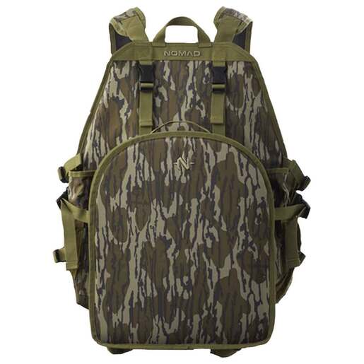 Nomad Men's Mossy Oak Bottomland MG Turkey Hunting Vest - The Nomad Meleagris gallopavo (Mg) Turkey Vest is designed for the turkey hunter who has the utmost passion for the wild turkey (Meleagris gallopavo). With input from hunters, guides and professionals across the wild turkey's range, The Nomad Mg Turkey Vest has now been reengineered with decades of first-hand experience in the turkey woods. Designed to allow optimum organization of your gear, while providing comfort and ease of mobility on the hunt, the Nomad Mg Turkey Vest is built by turkey hunters for turkey hunters. Improved padded, reinforced shoulder straps with chest harness for all-day comfort Removable 3" thick seat with buckle, double magnetic attachments and a seated adjustment handle for extreme comfort and breathability 4 enlarged internal pockets of various depths and widths 8 size adjustment straps and three front strap fasteners for custom fit Box call pocket with adjustable buckle, chalk pouch and locator call sleeve New secure Bungee lock on pot call pocket External Thermacell pocket with new additional hook for heightened security Double structured friction call pocket with neoprene protection dividers Mesh mouth call pockets 3 enlarged external striker pockets with magnetic closure 4 enlarged external (2 vertical, 2 horizontal, quick access/low depth) pockets Roomy adjustable rear game pouch with internal clipper, water bottle pockets and improved decoy stake pockets New easy-grab zipper pulls with improved zipper quality and direction Style: N9000003