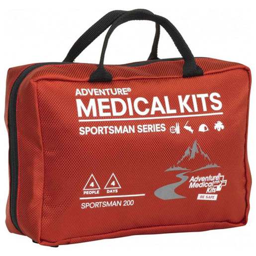 Adventure Medical Kits - Sportsman 200 First Aid Kit - Specifically designed to meet the needs of sportsmen, the Sportsman 200 medical kit offers essential supplies like moleskin, medications, EMT shears, and trauma pads for up to 4 people on 4-day trips. The well-organized wilderness first aid kit features an external kit map and contents organized by injury to let you quickly find what you need in an emergency. Easy Care Organization System - Provide fast and effective care in emergencies. The first aid kit’s first aid supplies are organized into injury-specific pockets that make it possible for anyone to confidently administer first aid. Find It Fast Design - Find the emergency supplies you need quickly, even in the dark. The external kit map shows where supplies are located, while the reflective design helps you find the kit quickly at night. Trauma Supplies - Stop bleeding from field dressing injuries, animal attacks, and knife wounds with the trauma pad. Stabilize fractures and sprains using the wide elastic bandage and a variety of other dressings. Wilderness & Travel Medicine: A Comprehensive Guide - Know how to treat injuries experienced while hunting, fishing, or snowmobiling. Written by wilderness medicine expert Eric A. Weiss, MD, this book includes over 50 improvised techniques and 100 illustrations for treating outdoor injuries and illnesses. Backcountry Wound Care - Clean and close wounds from fishing hooks, skinning knives, and other backcountry injuries using the irrigation syringe, butterfly closures, EMT shears, and more hospital-quality supplies. Blister & Insect Protection - Stop blisters before they start with die-cut moleskin, the most reliable dressing to reduce friction and prevent blisters. Safely remove ticks and splinters with specially designed forceps. Kit Includes: INSTRUMENT 1 – EMT Shears, 4" 1 – Elastic Bandage, 2" 1 – Splinter/Tick Remover Forceps 3 – Safety Pin 1 – Pencil MEDICATION 3 – After Bite Wipe 4 – Aspirin (325 mg) 4 – Ibuprofen (200 mg) 4 – Acetaminophen (500 mg) 2 – Antihistamine (Diphenhydramine 25 mg) CUTS & SCRAPES 5 – Easy Access Bandages, Fabric, 1" x 3" 5 – Easy Access Bandages, Fabric, Knuckle 3 – Butterfly Closure Bandage 3 – Triple Antibiotic Ointment 6 – Antiseptic Wipe 2 – Alcohol Swab FIRST AID MANUAL 1 – Wilderness & Travel Medicine: A Comprehensive Guide 1 – Patient Assessment Form STOP BLEEDING FAST 2 – Nitrile Glove 1 – Trauma Pad, 5" x 9" WOUND CARE / BLISTER 1 – Wound Irrigation Tool, 10cc 4 – Sterile Gauze Dressing, 4" x 4" 4 – Sterile Gauze Dressing, 2" x 2" 2 – Sterile Non-Adherent Dressing, 3"x 4" 1 – Gauze Bandage, 2" 1 – Cloth Tape, 1/2" x 10 Yards 14 – Moleskin, Pre-Cut/Shaped 2 – Cotton Tip Applicator