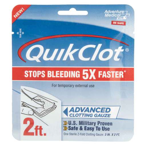 Adventure Medical Kits QuikClot Gauze - With QuikClot Advanced Clotting Gauze, you have the power to stop bleeding in the palm of your hand. Tested and proven through years of combat use by the U.S. Military, QuikClot can be depended on to save time when every second counts. The hemostatic gauze works on contact to stop bleeding by accelerating your body's natural clotting process, clotting blood five times faster. QuikClot Gauze is impregnated with kaolin, a naturally-occurring mineral proven to be effective as a hemostatic agent. Inorganic and inert, kaolin is non-allergenic, making it safe and effective to use. This extremely absorbent gauze is flexible and pliable, easily contouring to wounds. Make QuikClot a part of your trauma pack or first aid kit so you're prepared when emergencies occur. Features Control bleeding with QuikClot hemostatic gauze, which acts on contact to stop bleeding five times faster. The gauze is impregnated with kaolin, a mineral that accelerates your body's natural clotting process. Choose the hemostatic agent with years of proven effectiveness in combat and recommended by Tactical Combat Casualty Care (TCCC) guidelines for use by all branches of the US military. Apply QuikClot Gauze without fear. Kaolin is an inert, non-allergen mineral demonstrated to be an effective clotting agent that contains no botanicals and no animal or human proteins. Act quickly with confidence in emergencies. QuikClot Clotting Gauze easily conforms to wounds – simply position the gauze over the source of the bleeding and apply pressure. Be prepared wherever you go with this lightweight, extremely compact hemostatic dressing. Add it to your trauma kit, glove box, emergency medical kit, range bag, first responder kit, or purse.