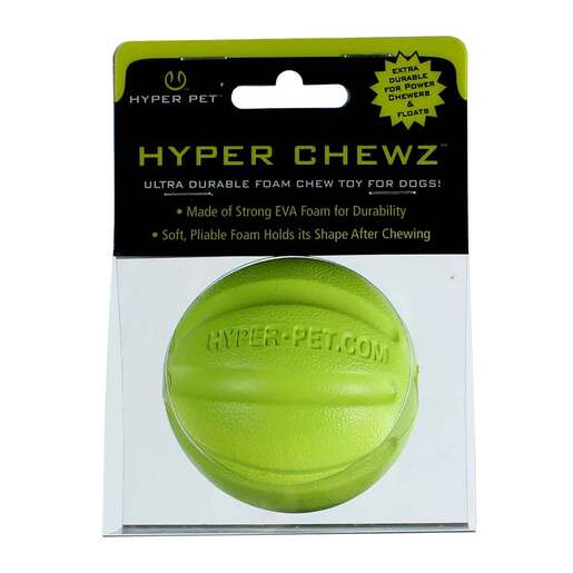 Hyper Pet Chewz Eva Foam Retrieving Ball Dog Toy - Hyper Chewz Toys are versatile and the perfect choice for interactive fun encouraging your dog to run, fetch, and exercise. The buoyant, lightweight design allows for worry-free, interactive play at the beach, lake, or pool. Made of lightweight, resilient EVA foam, this dog toy is perfect for sensitive teeth. The Toys foam surface resists mess and enables pet parents to rinse off dirt and slobber. As with any dog toy, it is recommended supervising your pet during playtime. Eva Foam 3.75X2.5X5in