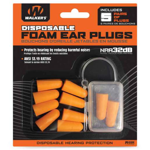 Walker's Foam Ear Plugs - 5 Pairs - Foam Ear Plugs for protecting your ears from harmful noise levels. Conforms To Shape Of Ear Foam Tips Are Ideal For Louder Environments Convenient Handy 5-Pack Noise Reduction Rating NRR 32DB