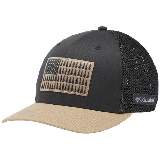 Columbia Men's Mesh Tree Flag Patch Fitted Hat - Take on the great outdoors in breathable comfort with the Columbia Columbia Mesh Tree Flag Ball Cap! Mid-profile fit Six-panel construction with curved brim Embroidered flag patch adorns front Mesh backing for breathable wear Logo patch at back 98% cotton/2% elastane Style: 1837101