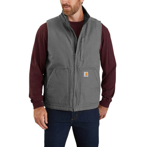 Carhartt Men's Sherpa Lined Duck Cotton Work Vest - Layer up and head out into the field comfortably on cool days in this sherpa-lined vest. Featuring a rugged cotton duck exterior for durability, the sherpa lining provides additional warmth. Two large, sherpa-lined front pockets Two inside pockets Droptail hem for added coverage Map pocket on left chest with zipper closure Sherpa lining for warmth Style: 104277