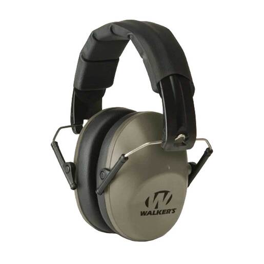 Walker's Pro Low Profile Folding Passive Earmuffs - Low profile contoured cup. Padded headband for comfortable fit. Soft PVC ear pads. ANSI S3.19 Rated Low profile contoured cup Padded headband for comfortable fit Soft PVC ear pads Ultra-light weight Compact folding design NRR 22