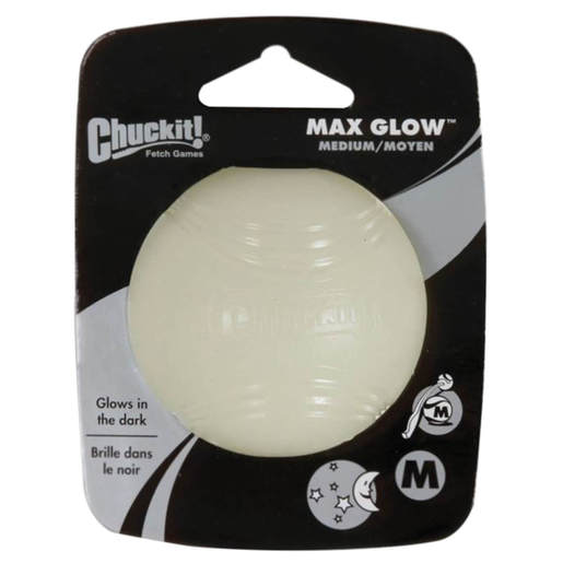 Chuckit Max Glow Medium Ball - Glow - Durable rubber ball glows in the dark to allow the game to keep going when the sun goes down. Gripable rubber ball made just the right size to use with Chuckit! Launchers. Medium Grapable Rubber Ball