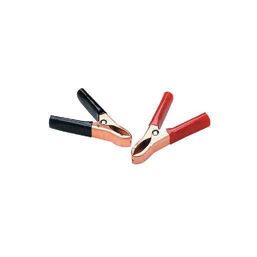 SeaChoice Electrical Battery Clips - The Seachoice Electrical Battery Clips, one red and one black, can be used with all operated electrical devices. These clips are copper plated, have a one inch jaw opening, and are three inches long. The Seachoice Electrical Battery Clips have a power capacity of 50 Amps.