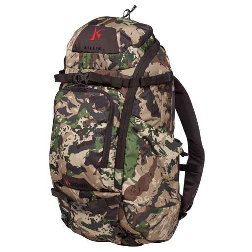 Killik K2000 36 Liter Day Pack - The end-all be-all daypack that can double as a tree stand pack. A place for everything and everything in its place. Features: • Lightweight, super-strong, water-resistant polyester fabric • YKK zippers with easy-grab pullers • Large horseshoe zipper on main compartment zips down for access and organization while in a treestand • Quality Duraflex hardware and buckles • Nylon webbing straps • Reinforced seams and stress points • Padded breathable jersey-lined backpanel • Dual backpanel support bars offer torso strength and pack stability • Contoured shoulder straps with adjustable chest strap • Built-in safety whistle buckle in chest strap • Wrap-around padded waist belt with zippered accessory pockets • Dual front zippered pocket keeps smaller gear organized • Front, side, and bottom compression straps for hauling extra gear on the outside and stabilizing the load inside the pack • Large side “stuff it” accessory pocket • Quiver attachment attainment system • Included blaze orange rain cover in bottom zippered pocket • Weapon carry system will transport either a bow or gun • 21+ Pockets! • Hydration compatible (bladder system not included)