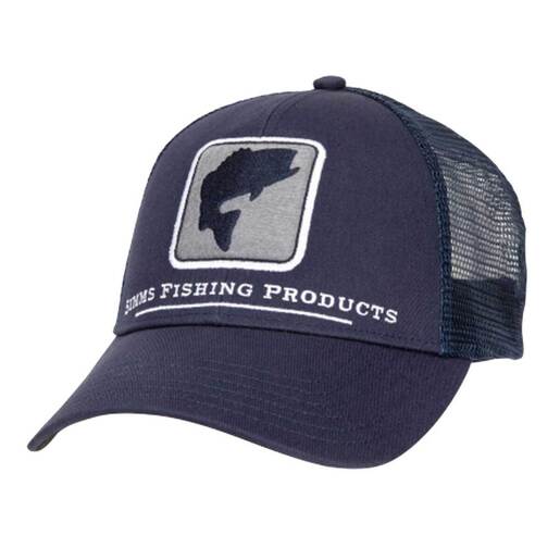 Simms Bass Icon Trucker Hat - The classic Bass Icon Trucker Hat features the iconic bass patch and Simms text with a low-crown fit, mesh back and adjustable snap closure for the perfect fit. 100% cotton twill 96.4g Style: 12211