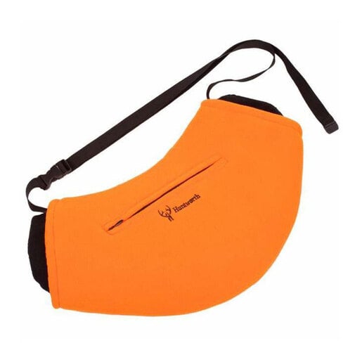Huntworth Nome Hidd'n Reversible Hunting Hand Muff - This heavyweight insulated hunting muff is thickly lined and keeps your hands toasty warm during the cold late season hunts. 1200g polyfill insulation Center front zipper pocket for added storage Inner fleece cuffs Adjustable waist strap Front is wet print fleece and back is anti-pill fleece Style: 172
