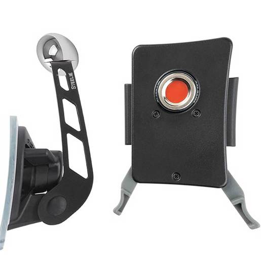 Dock your phone for the long haul and navigate hands-free with just a Squeeze™. The Steelie Squeeze Windshield Kit pairs the modern Squeeze Clamp with our classic Steelie Windshield Mount for space-saving attachment, smooth 360° rotation, and a strong hold. Virtually any phone is secured between the grippy Squeeze arms and magnetically attached to the Windshield Mount for adjustable viewing. To secure your phone for the drive ahead, easily pinch the levers to open the Squeeze arms, place your phone, and release the levers to secure - no extra grip strength needed. As an added bonus, when the Squeeze Clamp is on your phone, it can magnetically connect to other Steelie mounts and magnetic surfaces such as your refrigerator, car, or toolbox for hands-free viewing. In addition to allowing for endless interchanging between multiple phones, cases, Squeeze is also compatible with MagSafe® cases and wireless chargers. The Magnetic Socket Plus on the Squeeze Clamp features a silicone center, providing a smooth glide and firm grip when connected to the Windshield Mount while allowing for easy 360° rotation and adjustment. The Windshield Mount features an adjustable aluminum arm and suspended Steelie ball design which can be securely adjusted to your ideal angle. The patented suction cup design features an easy-to-use locking lever that engages the suction cup for ultimate holding power to your windshield, also acting as a quick release lever when you want to transfer it to another vehicle.