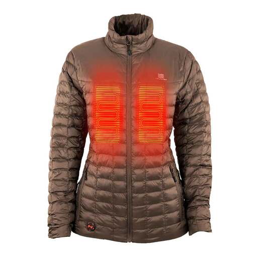 Fieldsheer Women's Backcountry Heated Winter Jacket - The Backcountry provides instant heat when the weather turns cold, keeping you outdoors and enjoying your favorite activity. Lightweight 100% Nylon Outer Shell 100% Primaloft Synthetic Down Polyester-Filled Core 100% Polyester Inner Liner with Zapsheer Anti-Static Technology 2 Waist Zipper-Close Hand Pockets Internal Storage Pocket Stow-Away Carry Bag Tri-Zone Heating (Left & Right Chest, Upper Back) Bluetooth-Enabled Wireless Control MW Connect Mobile App Compatible Integrated Waterproof Touch Control Button 4 Selectable Instant Heat Settings Style: MWWJ04340221