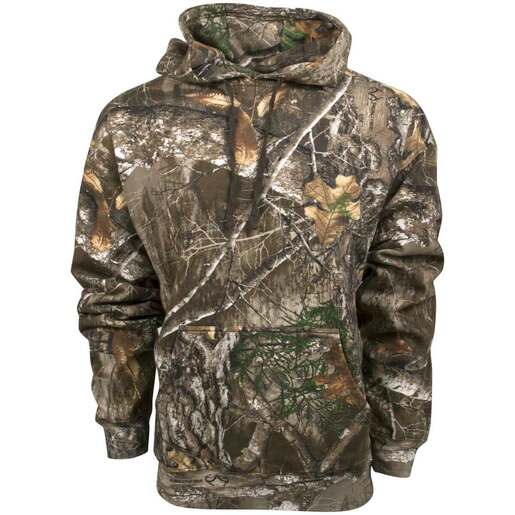 Kings Camo Men's Realtree Edge Classic Cotton Hunting Hoodie - A classic hoodie that is made for comfort and durability. Cotton/poly blend 241g material Kangaroo pocket Drawstring hood Camo cuff on sleeve and waist Hoodie weight: 610g Style: KCB115