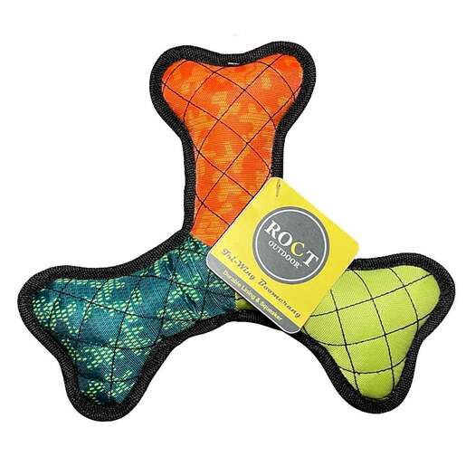 ROCT Outdoor Tri-Wing Boomerang Lined Dog Toy - Durable and colorful, ROCT Outdoor’s Tri-Wing Boomerang Lined Dog Toy is ideal for play time with your dog. The internal squeaker ensures your dog will have continued interest, while the added mesh lining gives toy lasting durability.