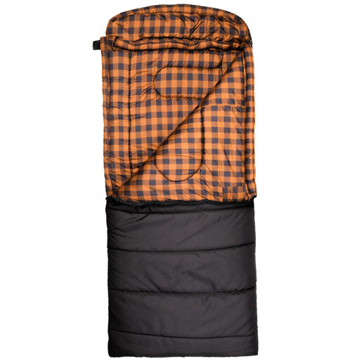 Rustic Ridge Elk Hunter -35F Degree Rectangular Sleeping Bag - Black/Bark - Built for extremes, the Rustic Ridge Elk Hunter Rectangular Sleeping Bag is rugged enough to stand up to a lifetime of adventure. At 90in long and 39in wide, this spacious sleeping bag is longer than a twin mattress and just as wide, giving you plenty of room to stretch out after a long day outdoors. An updated version of the classic canvas sleeping bag, it features a tough, poly canvas shell that is durable and water resistant, with added comfort features like the mummy-style hood, zipper and shoulder draft tubes, and ultra-soft flannel lining. Double-layer offset stitching helps to eliminate cold spots, so you can rest easy whether you're bunking out in the back of your truck or bedding down a dozen miles from anywhere. Features Four temp ratings: -35°F, -20°F, 0°F, 20°F Spacious, comfortable all-weather sleeping bag Durable, water-resistant poly canvas shell stands up to years of rigorous use Soft, brushed poly flannel lining Full-length zipper & shoulder draft tubes keep warm air from escaping Cinchable mummy-style hood for added warmth and comfort Double-layer construction and innovative fiber fill Built-in compression straps (storage duffle on -35°F bag) Interior storage pocket Lifetime Warranty