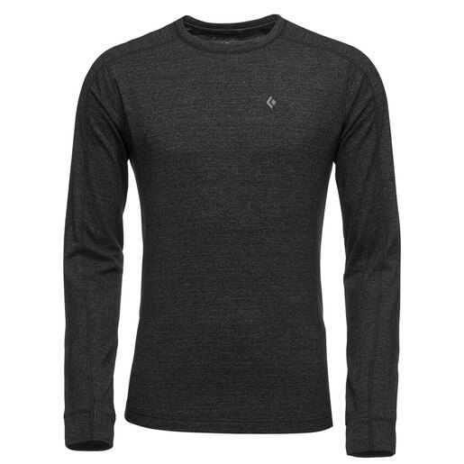 Black Diamond Men's Solution 150 Merino Baselayer Crew Shirt - Designed for high-output activity in the mountains, the Solution 150 Merino Baselayer Crew builds the foundation for your skin-to-environment layering system. Featuring innovative patented NuYarn stretch merino wool—a fabric that’s stronger, warmer, and dries faster than other merino wool fabrics by utilizing the technology of wrapping a nylon core with extra-fine merino fiber—the Solution 150 Baselayer Crew offers superior thermoregulation and moisture management and is naturally bacteria and odor resistant. Non-mulsed Merino certified wool Flatlock stitching eliminates chafing Integrated thumb-holes Slim fit 190g Merino Wool blend single Jersey (78% Merino Wool, 22% Polyester) Style: AP760020