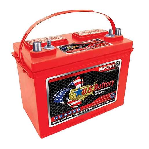 U.S. Battery US 24DC XC2 Deep Cycle 12-Volt Multi-Purpose Battery - U.S. Battery’s Flooded Lead Acid batteries are engineered and proven to provide the fastest cycle-up to full rated capacity, and have the highest total energy delivered over the life of the battery. Made in America, U.S. Battery FLA batteries utilize the company’s exclusive XC2 formulation and Diamond Plate Technology, allowing them to reach peak capacity in fewer cycles, higher total energy delivery, and an extended battery life. The high charge efficiency design also meets new California Energy Commission regulations for combined charger/battery charge efficiency. 20 Hour Rate: 85 Minutes of Discharge @ 75 Amps: 38 Minutes of Discharge @ 25 Amps: 145 CCA @ 0 Degrees (F) -18 Degrees (C): 400 Length: 10 7/8in (276mm) Width: 6 3/4in (171mm) Height: 9 3/8in (238mm)