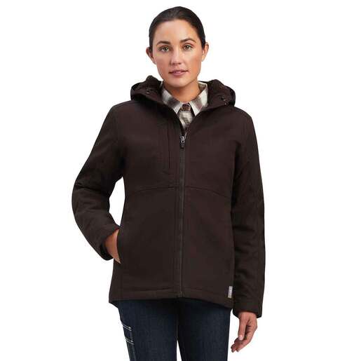 Ariat Women's Rebar DuraCanvas Insulated Work Jacket - Lighter, faster, stronger gear engineered to work as hard as you do. Cut from tough-as-nails, flexible stretch canvas, this hardworking jacket features an insulated lining to keep you warm and expert seam construction to keep you moving comfortably. Ribbed cuffs and hem Zippered hand and chest pockets plus interior chest pocket Stretch sherpa-lined hood 68% Cotton, 30% Polyester, 2% Spandex Greater arm mobility seam construction Triple needle stitched for added durability Style: 10041601