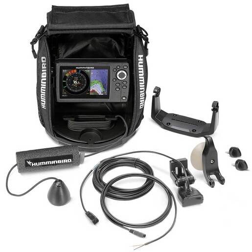 Humminbird Ice Helix 5 Chirp GPS G3 All Season Fish Finder/Flasher - The ICE HELIX 5 CHIRP GPS G3 All Season brings you the most fish finding power and technology that can fit in a 5-gallon bucket. Take advantage of crystal-clear Dual Spectrum CHIRP Digital Sonar with 3/4" target separation, CHIRP Interference Rejection, Adjustable Sonar Zoom, Jig Charge Mode and unprecedented viewing options specifically for the ICE angler. And you'll be set once the ICE thaws, because the ICE HELIX 5 CHIRP GPS G3 All Season includes everything you need to use it on a boat or in portable applications during the summer. Enjoy it all on a full color, 5" HD LCD display. Dual Spectrum CHIRP Sonar: See high-resolution returns of individual fish, bait and structure on both the flasher and traditional 2D sonar views at greater depths and range, with target separation down to 3/4". CHIRP Interference Rejection: Six settings keep competing sonar signals from cluttering your screen, providing a clear view in both sonar and flasher modes. Adjustable Sonar Zoom: Hone in on fish, whether they are tight to the bottom, or suspended high in the water column. Utilize 2X zoom on the flasher screen, or up to 16X zoom on 2D sonar view. Internal Precision GPS Built-in: Take the guesswork out of finding your fishing spot. Pinpoint your location by marking waypoints of your most productive areas and navigate out to your spot and back safely with GPS tracks. Humminbird Basemap Built-in: Our enhanced standard Basemap provides you with a clear view of underwater terrain and surrounding points of interest so you can fish and navigate with total confidence. Identify buoys, daymarkers, hazards, marinas, contours, depth markers and much, much more. Includes charts of more than 10,000 lakes. AutoChart Live ICE: Create real-time 1-foot contour maps of your fishing spots to find fish faster. Create maps on ICE to show humps and drop-offs or entire reefs, while utilizing Humminbird LakeMaster features, Depth Highlight, Shallow Water Highlight and Water Level Offset. MicroSD Card Reader: Single card reader slot used for premium mapping, software updates or to save screenshots, sonar recordings and waypoints from your ICE HELIX. Ultra Bright and Detailed LCD Display: The ICE HELIX screen provides everything you need to know, on a crystal-clear display with adjustable brightness. Whether in a fish house or on open ICE, you'll easily be able to see digital depth display, sonar returns and more exclusive features, all shown in real-time. Jig Charge Mode: Use your ICE HELIX to charge up your glow-painted spoons and jigs and get back down to the hot bite quickly. Portable Shuttle and Carrying Case: The soft-sided carrying case and shuttle mount protect your Humminbird ICE HELIX for safe transport and include built-in cable and transducer management. all season Ready: This ICE HELIX fish finder comes with everything you need to use on both ICE and on your boat or portable applications in the summer. What’s Included: ICE HELIX 5 CHIRP GPS G3 fish finder, Dual Spectrum CHIRP ICE transducer, 9Ah battery and charger, ICE shuttle, hardware, power cable, portable bag and all necessary accessories to use on a boat or in portable applications (transom mount CHIRP transducer with optional suction cup transducer mount, fish finder gimbal mount and power cord).