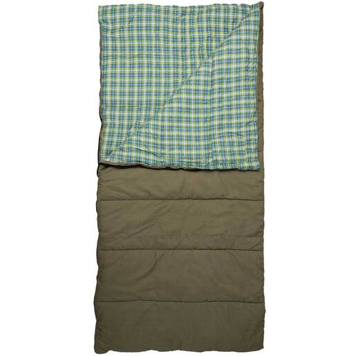 Teton Evergreen 35F Degree Regular Rectangular Sleeping Bag - Experience the perfect blend of comfort and affordability with the Teton Evergreen flannel sleeping bag. Crafted from durable canvas and lined with plush flannel, this rectangle sleeping bag offers a soft and cozy feel reminiscent of your favorite flannel shirt. Teton's softest bag yet, the Evergreen is designed to keep you warm and comfortable on your outdoor adventures. With temperature rating of 35F degrees, and in a regular standard size (82in x 40in). The compression straps make it easy to roll up and store, while the heavy-duty zippers ensure long-lasting durability. Enjoy the warmth and comfort of home, even in the great outdoors. Sleep easy. Features Durable and stylish Generous draft baffles Tough 600D faux canvas shell Interior phone pocket Transforms into camp blanket with two-way L-zip Ample insulation Compression straps for storage Teton Lifetime Warranty