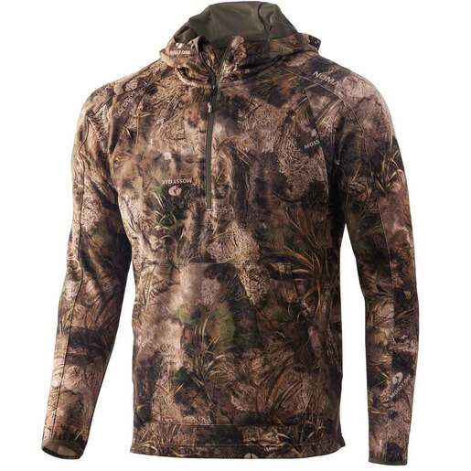 Nomad Men's Mossy Oak Migrate WPF Hunting Hoodie - Built for early to mid-season waterfowl hunting, this universal mid-weight fleece can be worn as a layer or by itself to protect you against cool and windy conditions. Quarter zip Elasticised wrists Kangaroo pocket Small Nomad logo on back of neck Style: N1300052