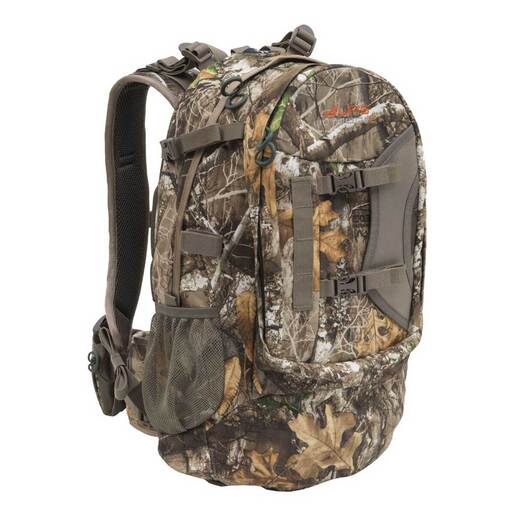 ALPS Outdoorz Pursuit 44L Hunting Pack - The Pursuit Bow Pack is perfect for keeping your bow secure and stowed away when you're trekking through the fields and rugged terrain. The lashing straps, along with the expandable bow pocket, make a great combination to securely keep your bow in place. Having a pack that will hold your bow is nice so you can keep your hands free. There is a large main pocket, large front pocket, and lower side mesh pockets to keep your gear organized. The waist belt is padded so when you're carrying a little bit of extra weight, the comfort level is still going to be top of the line. A blaze orange rain cover is included in case you are in the great outdoors when some rain rolls through.
