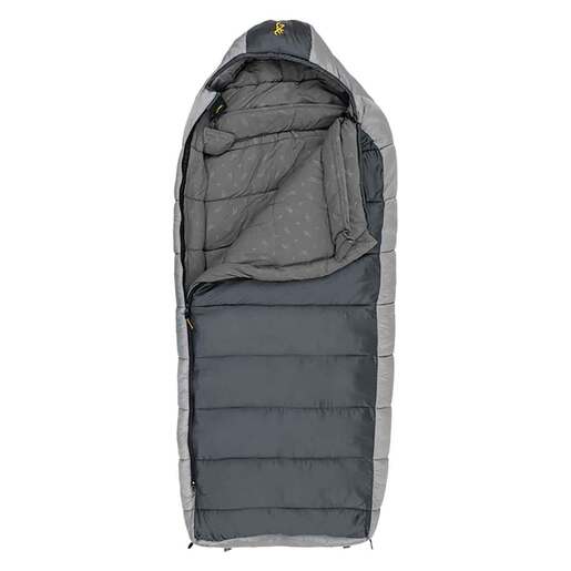 Browning McKinley -30F Degree Oversized Semi Rectangular Sleeping Bag - Charcoal/Gray - The McKinley is a "heavy duty" oversized hooded rectangle bag. It uses a 2-layer offset construction to eliminate cold spots. The McKinley series use Techloft Insulation. Techloft Insulation consists of multi-hole staple-length micro-denier fibers that have a siliconized finish for maximum insulation, loft, and compactness. It will keep you toasty on those colder nights when you'd prefer to have more "wiggle room" than you get with your mummy bag. The contoured hood also helps keep you warmer and keeps your warmth sealed in. For transporting, we include a compression stuff sack and roll-up straps. This is a great hunting bag for those frigid nights when you want a good night sleep. Features 210T nylon diamond ripstop outer Brushed polyester liner Oversized hooded rectangle TechLoft Silver insulation Two-layer construction #10 separating zippers Insulated chest and zipper baffle Compression stuff sack