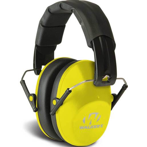 Walker's Low Profile Passive Earmuff - Yellow - Low profile folding earmuff with a contoured cup for maximum comfort. The soft padded headband and soft PVC ear pads mark for a comfortable fit on the range or anywhere you need compact hearing protection.