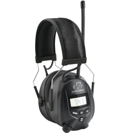 Walker's AM/FM Digital Earmuffs - Listen to your favorite radio stations while enjoying daily activities. This digital muff has a built-in radio with a switch key and volume adjusting key. Also has a built-in antenna so you always have the best radio quality without losing reception.