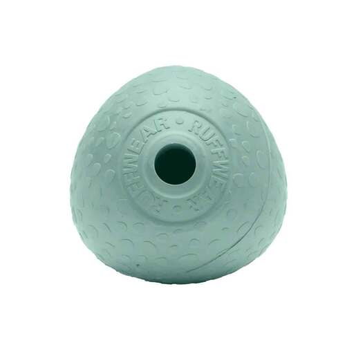 Ruffwear Huckama Rubber Throw Dog Toy - Sage Green - The Huckama moves like a critter and is fun to chase. This durable, interactive toy keeps dogs engaged with its erratic bounce and roll. The hollow design accepts food for treat rewards and whistles when hurled through the air. Made from natural latex rubber, a renewable resource. Erratic bounce for engaging fetch. Made from natural latex rubber - a renewable resource. Durable, chew-resistant
