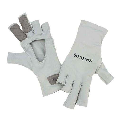 Simms Men's Solarflex Sunglove Fingerless Glove -Lightweight gloves that extend the range of what your hands can handle without limiting what they can do. UPF 50 Half-finger style Long length to cover wrists Built-in stripping guard Pairing snaps 92% polyester/8% spandex; Suede overlays on pointer and middle fingers Style: PG-12661