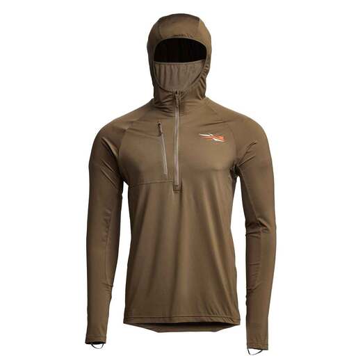 Sitka Equinox Guard Hoody - The Equinox Guard Hoody helps prevent contact with insects in three distinct ways: limited skin exposure, bite-reduction fabric and built-in Insect Shield. Ultra-lightweight, breathable, tightly knit stretch fabric helps prevent against bites Insect Shield repels mosquitoes, ticks, ants, flies, chiggers and midges Breathable mesh facemask deploys quickly and doesn’t obstruct vision Long tail is designed to be tucked into pants for maximum chigger/tick protection YKK zippered chest pocket UPF 50+ protection; treated with Polygiene Odor Control Technology Style: 50248-CY