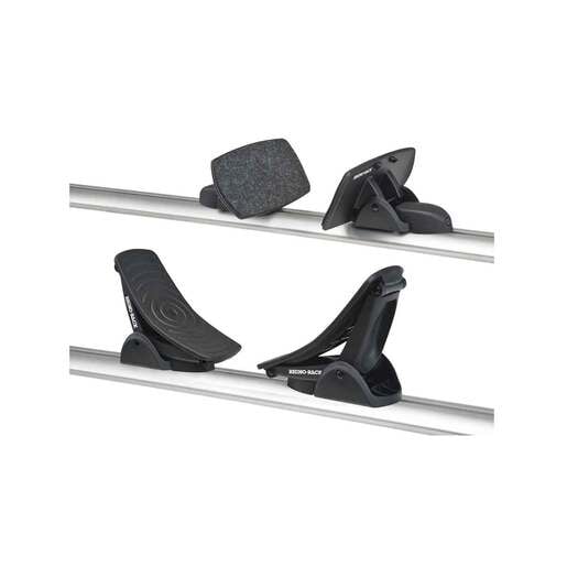 Rhino-Rack Nautic 581 Rear Loading Kayak Carrier - Experience the very latest in kayak carrying technology with the Nautic 581 Rear Loading Kayak Carrier. Rhino-Rack's Nautic 581 is locally built by engineers with first-hand kayaking experience and features the next generation in design and technology. The Nautic 581 comes complete with 2 front santoprene rubber pads designed to cushion your kayak and 2 rear spring loaded, felt covered pads for ease of rear mounting. With the unique secure core hidden, lockable cover plate, you are now able to lock your cradles to your crossbars, minimising the risk of theft. Compatible with all current roof rack systems that feature a bar channel, these stylish, low profile cradles are simple to use and the perfect loading accessory for your kayak and canoes for every occasion. The Nautic 581 comes with all the necessary accessories to get you started including: cradles, tie down straps, keys and fitting instructions Features: C-Channel fitment - fits most popular brand of roof rack crossbars Spring loaded rear cradles are felt covered to enable easy rear mounting Large contact surface area for extra stability when transporting your kayaks Secure Core locking system Includes 2 x Tie Down Straps and 2 x Rapid Straps with unique buckle protector UV protected Waterproof Corrosion resistant Mold resistant Masterkey compatible